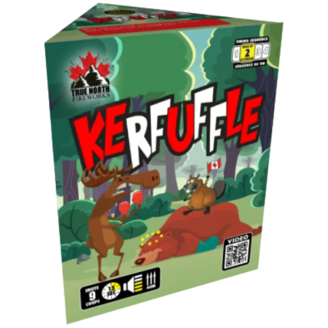 Red, green, blue and crackling tails bursts into timed rain