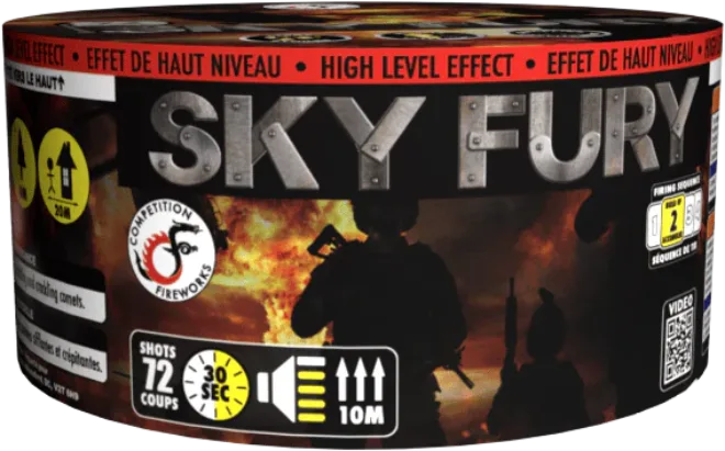 Blue tails to white strobing red stars, green tails to timed rain