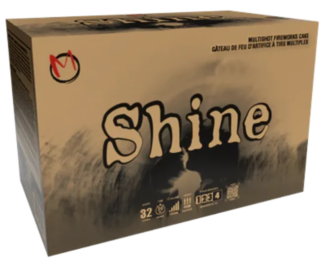 A multishot cake with 25 shots of tails, willows, glitter, comets and crowns