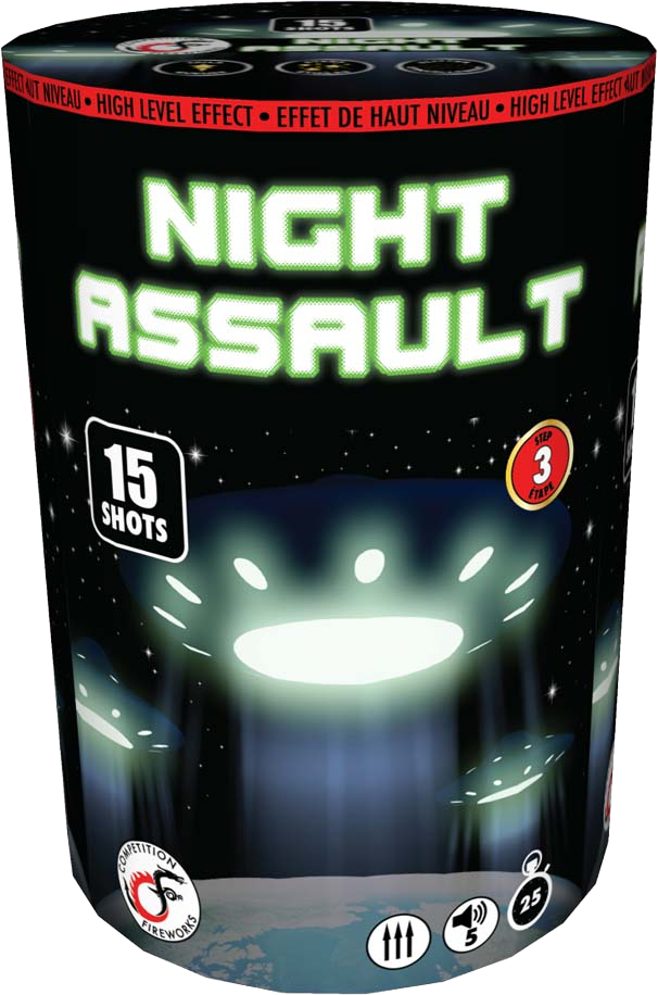 Finishes with a 4 shot finale of rising Green tail to a burst of Yellow, Green and Purple Stars